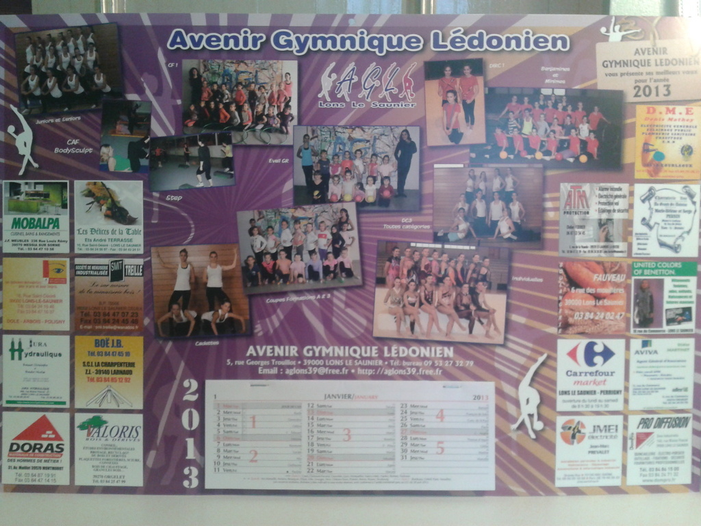 Chaque gymnaste (ou famille) se voit remettre 4 calendriers à vendre afin de récolter de l'argent pour la vie du club.